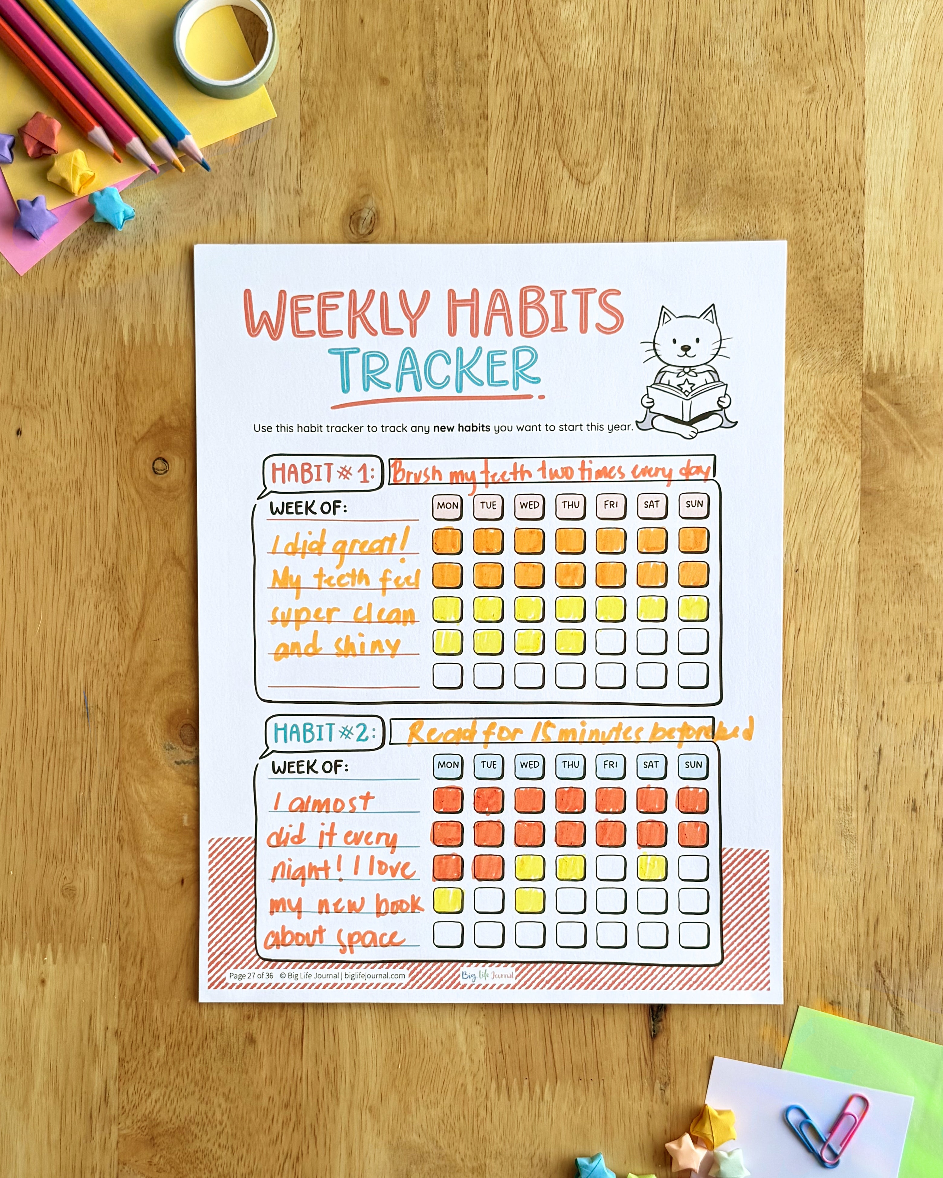 👉 Reflection pages that guide them through planning, tracking, and celebrating progress