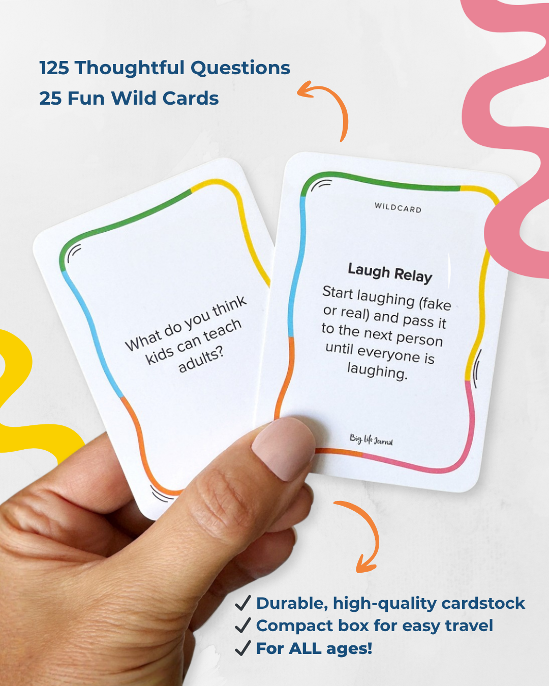 You can use the cards during family meals, road trips, or your bedtime routine to spark fun and thoughtful conversations.